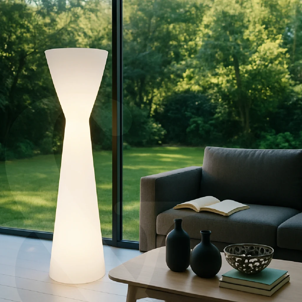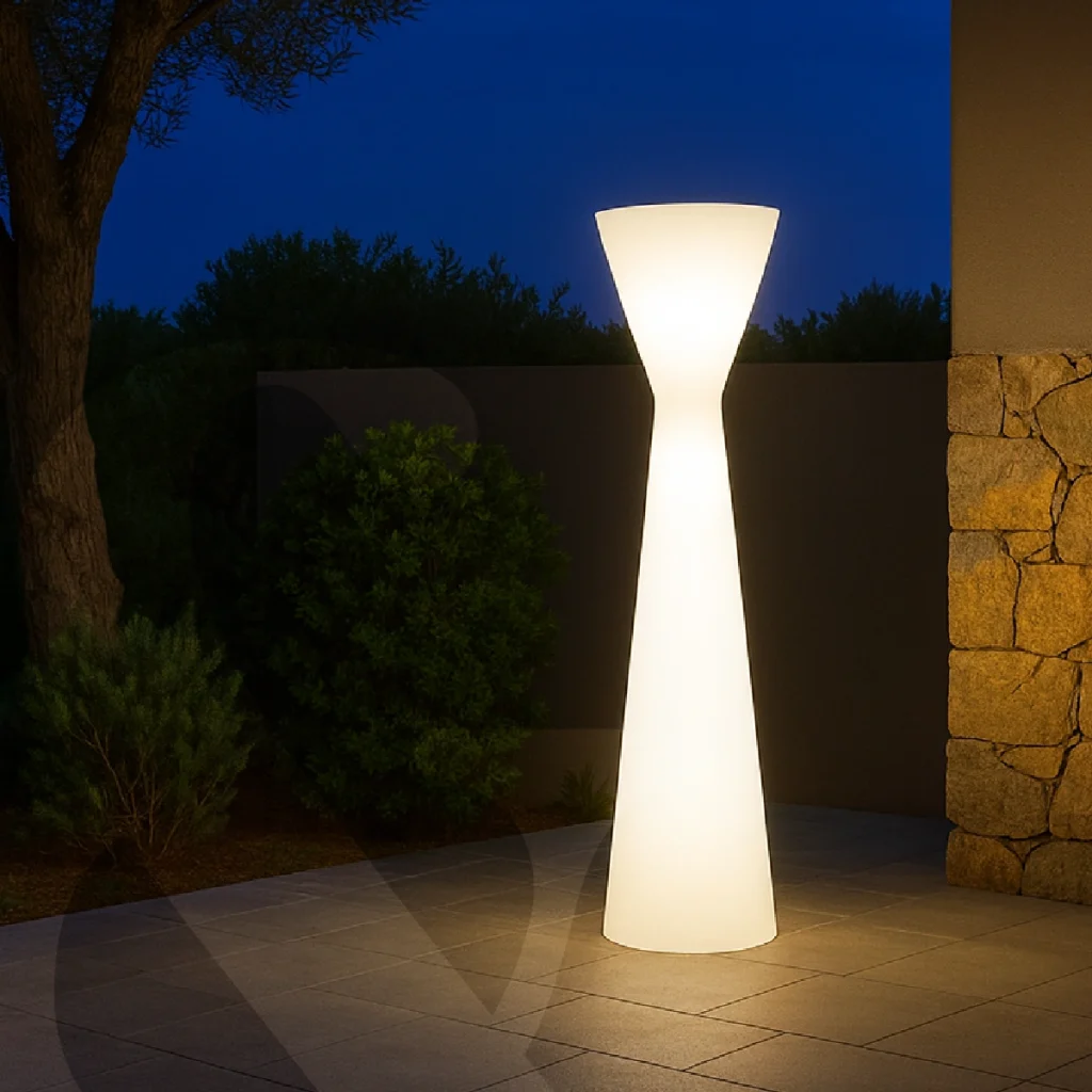 This is a floor lamp, which, as its name suggests, has a conical design. It’s ideal for creating a warm, inviting atmosphere in any space without disrupting an overly informal aesthetic. This product is equipped with the innovative LED TUBE cable lighting system which is patented