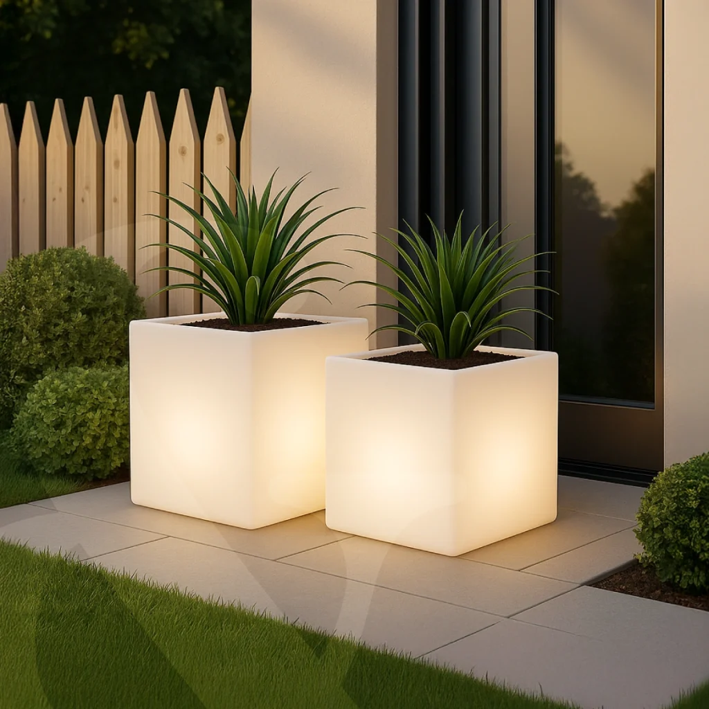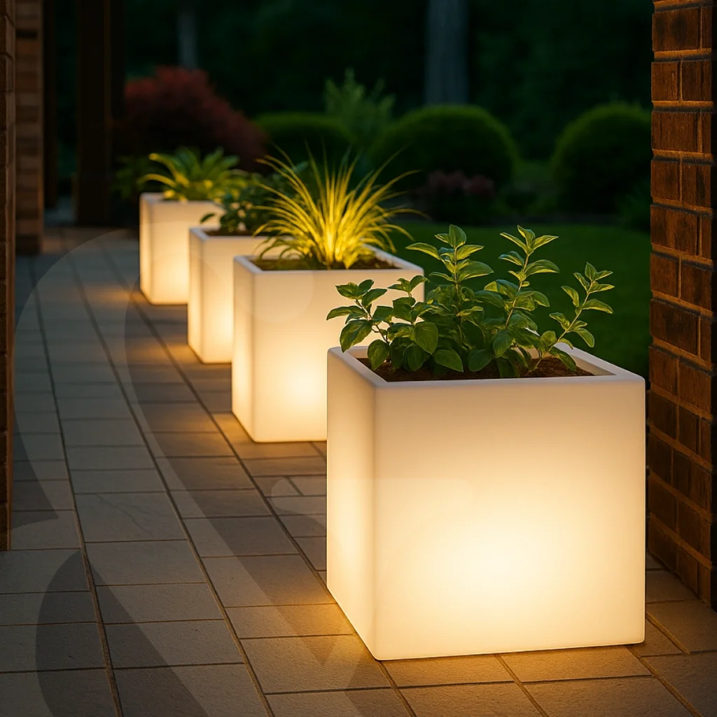 Square planter with a large planting area. Available in various finishes, sizes, and colors.